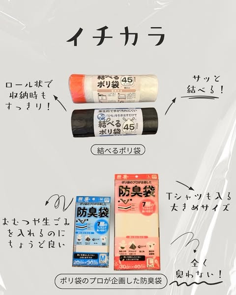 ・赤ちゃんのおむつや生ゴミなど臭い物を捨てる際に