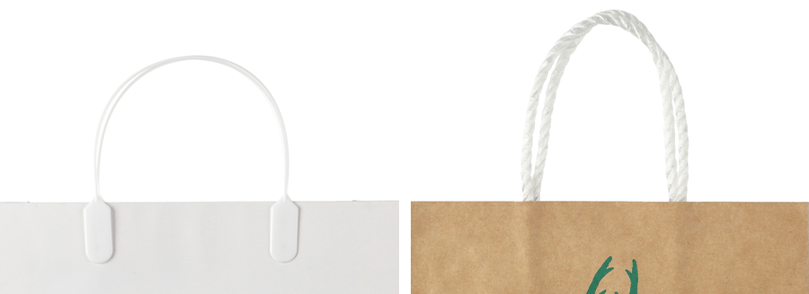 ポリエチレン製のハンドル。ハンドルを重ねて袋の口を閉じることができます。書類用の紙袋として用途が多い。※OFJ 対応不可