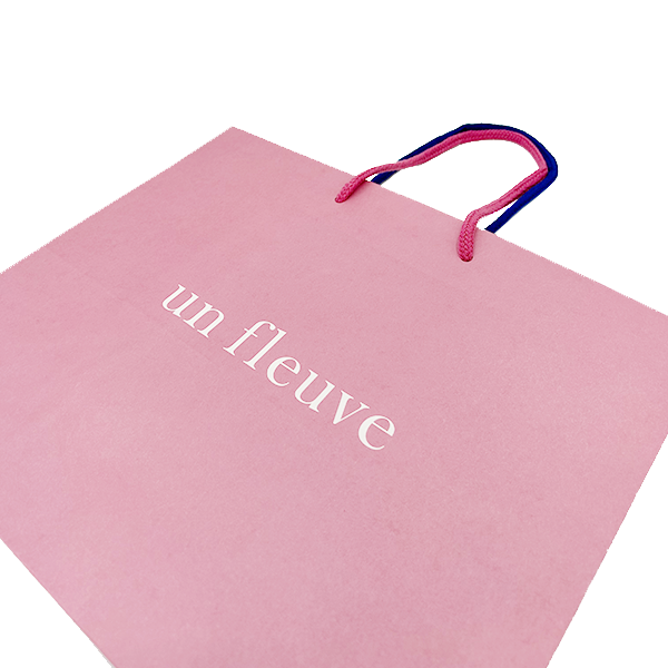 表と裏が違う紙袋。それぞれに違う着色と印刷を施しました。
